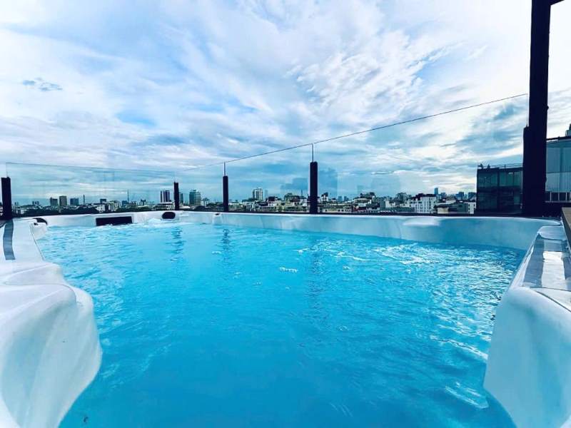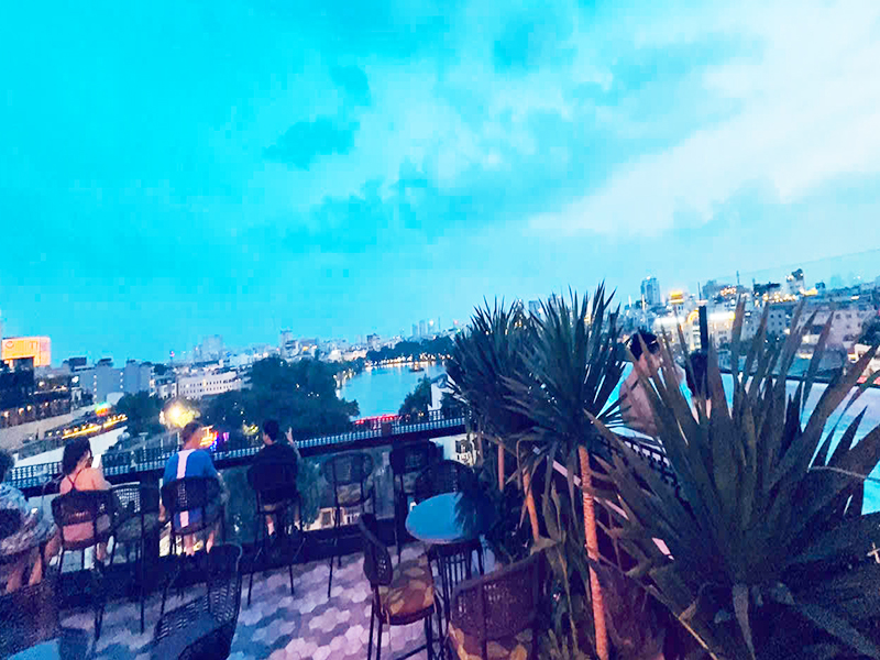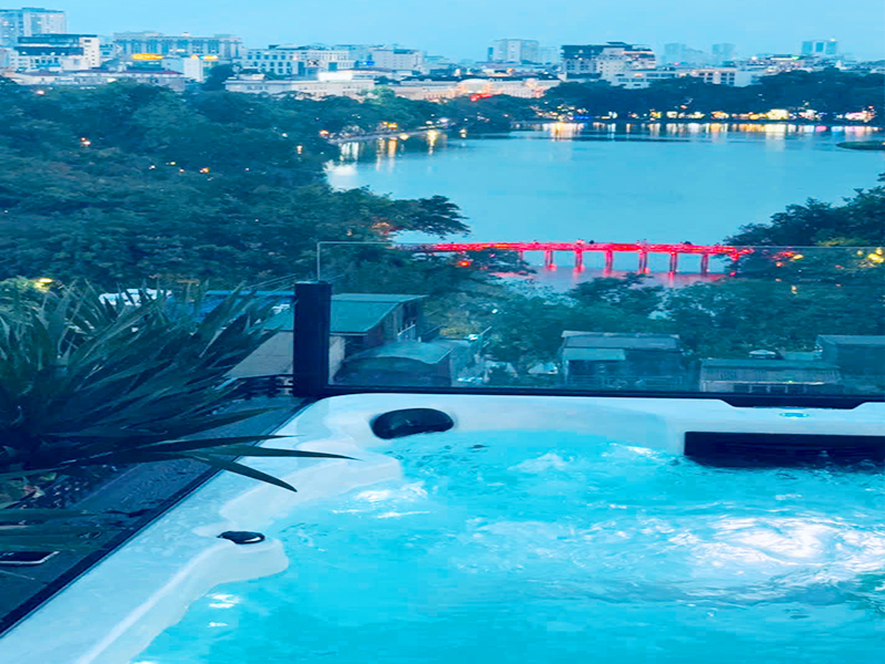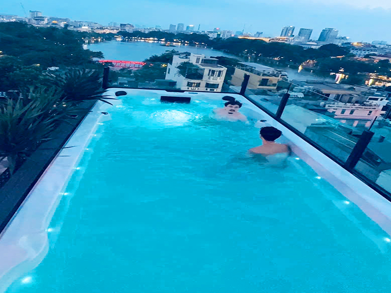 The rooftop also features a sky bar with a swimming pool and evening BBQ grills, making it the perfect setting to relax, dine, and take in the beauty of Hanoi from above.