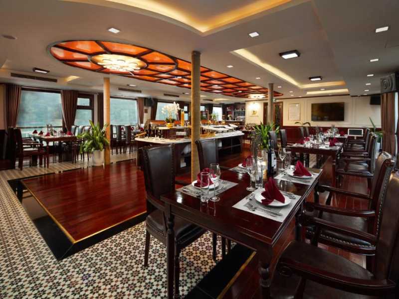 19.30: Time for dinner enjoying special seafood and Vietnamese typical food on the cruise. After dinner reward yourself with a large selection of cocktails at our bar, wine and cigars cellar or enjoy the landscape of the bay at night. Take one of our on-board activities like squid fishing, watching movies in the restaurant.